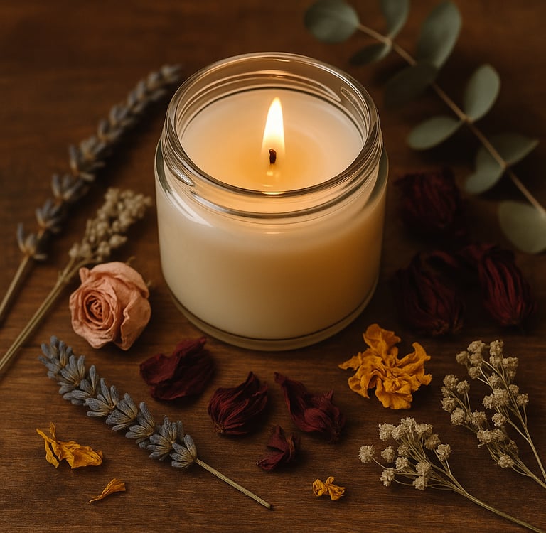 Pour renforcer encore plus la magie, tu peux associer fleurs séchées + pierres naturelles + parfum de la bougie. Chaque élément crée une synergie énergétique qui transforme ton rituel en un moment puissant et harmonieux.