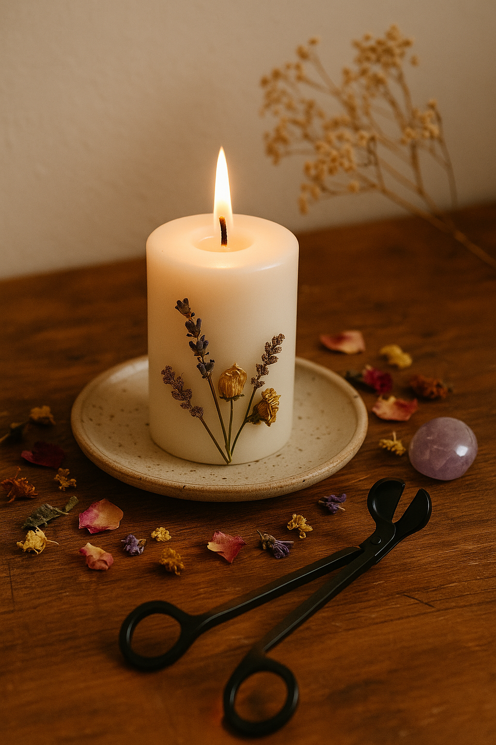 Associe tes bougies avec des pierres naturelles pour amplifier l’énergie à chaque allumage. Chaque rituel devient un moment précieux où ton intention se renouvelle.