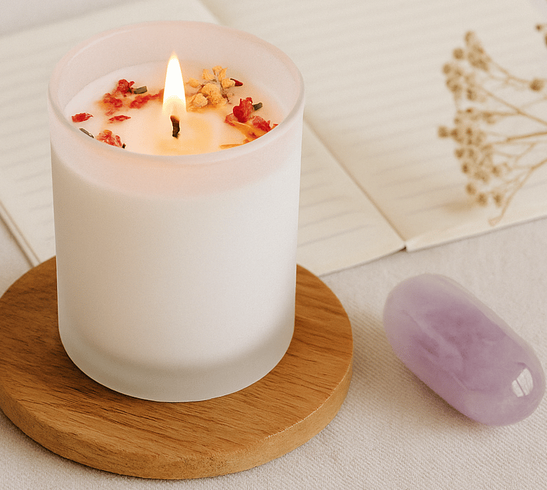Allume une bougie BTO HOME, choisie selon ton intention : sérénité, énergie, confiance, créativité… Les couleurs, parfums et fleurs séchées présentes dans la bougie vibreront avec ton énergie, renforçant ton intention.